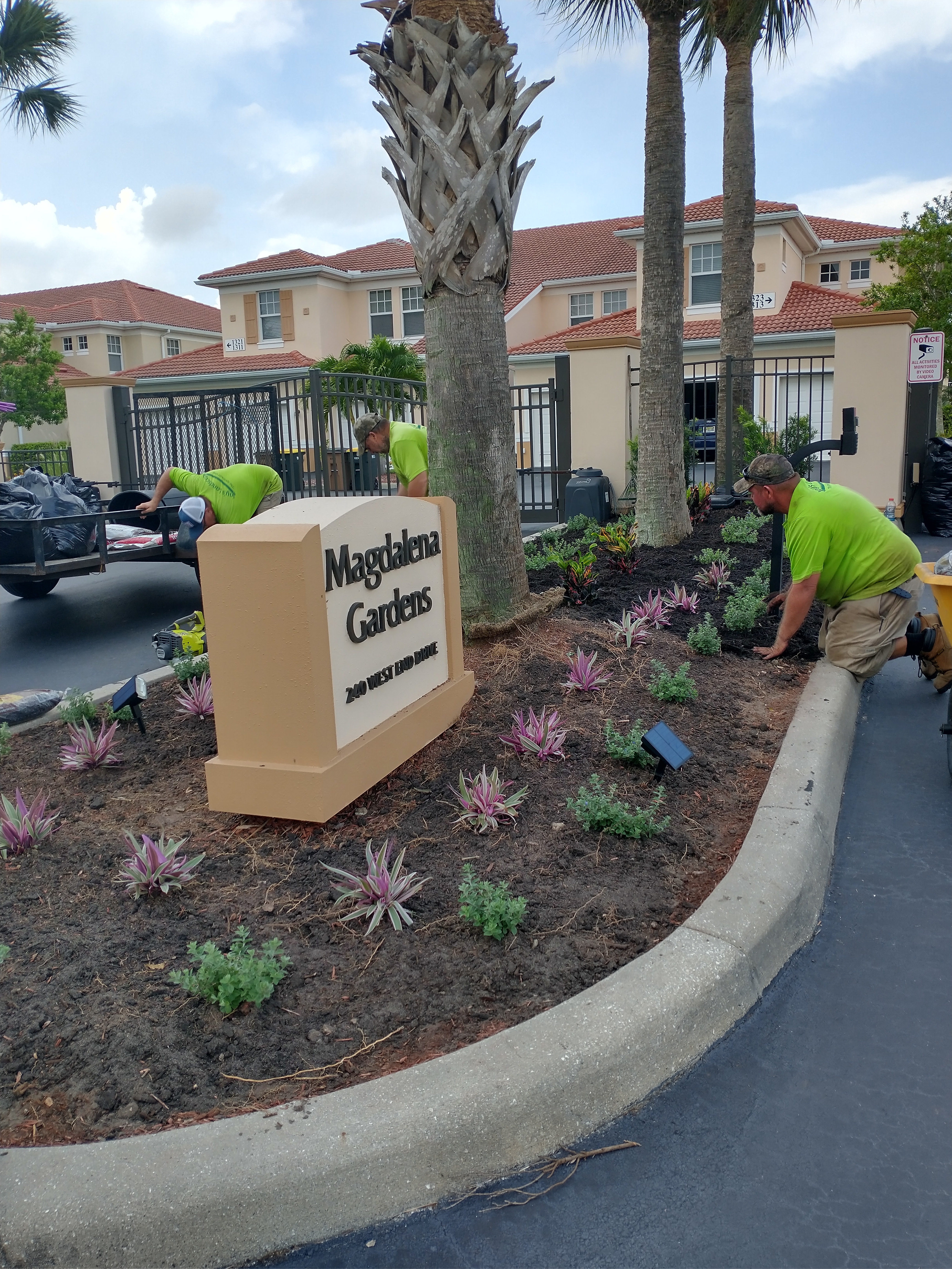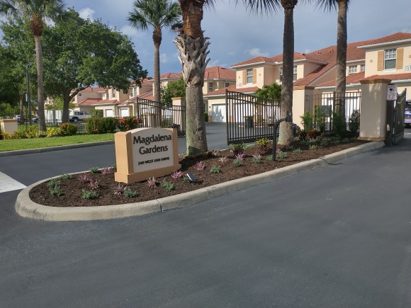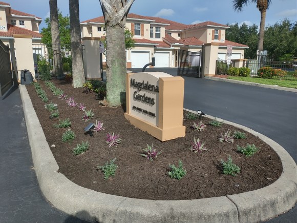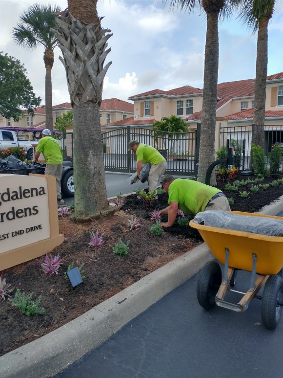 It’s been a busy two weeks here at Magdalena Gardens. The plants that were originally at the back entrance were moved to the outside fence area alongside Magdalena Drive. A huge thank you to Bob Arno and Jerry for moving these plants and getting the site ready for the landscaper. Jay’s Landscaping came in last week and put in the new plants and mulch at the entrance. It looks wonderful!!