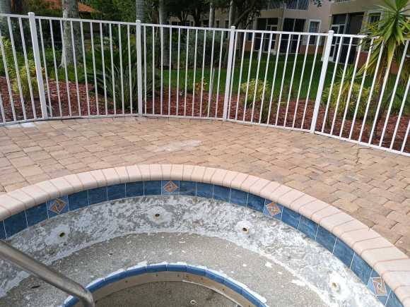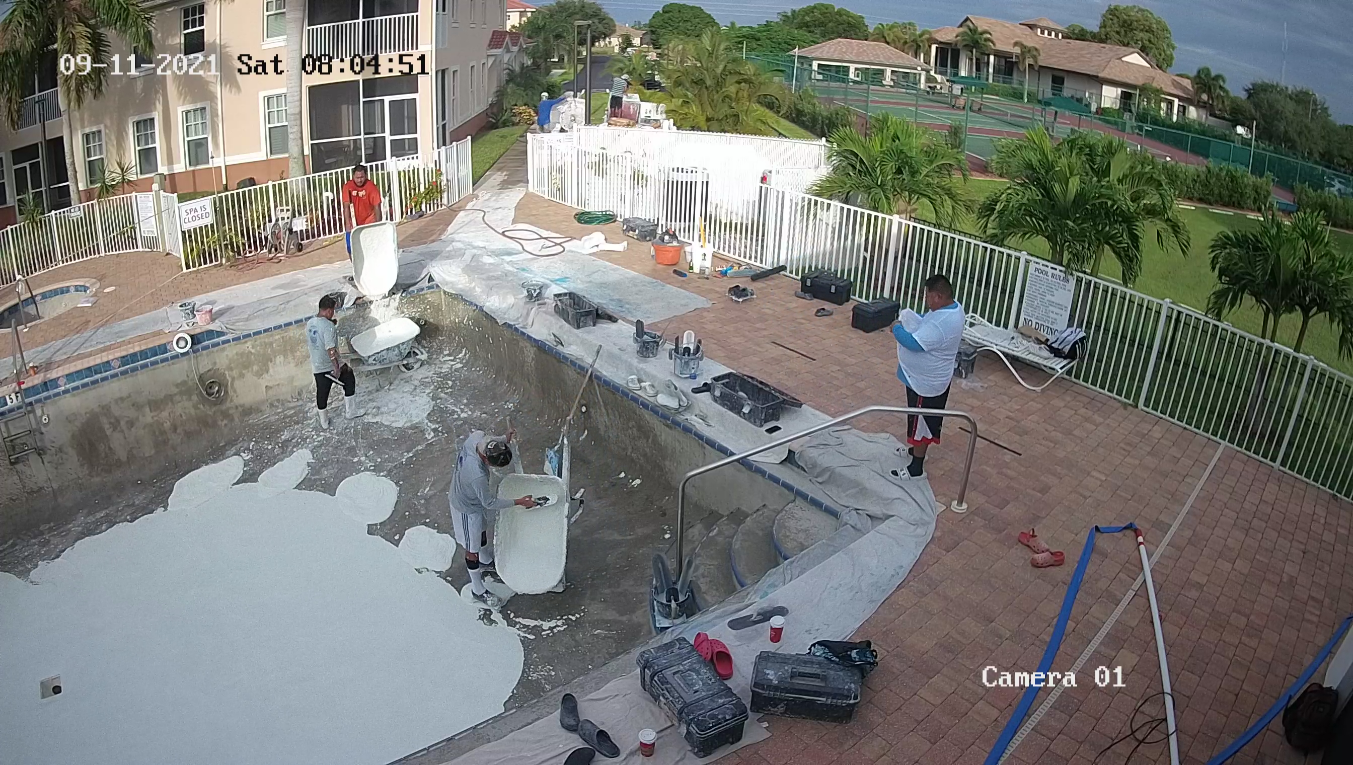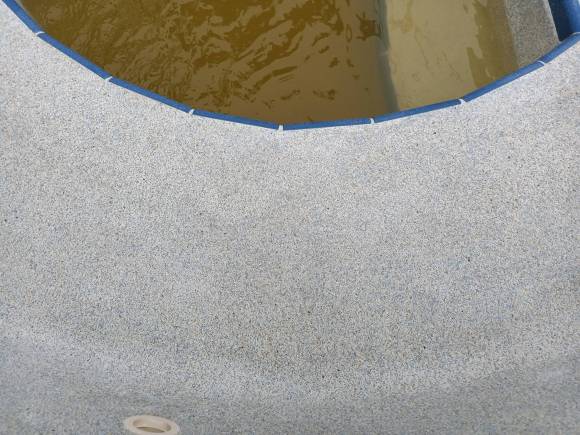 On Saturday, a large crew came to resurface both the pool and the spa with a product called “Stonescapes, Aqua cool mini pebble”.
